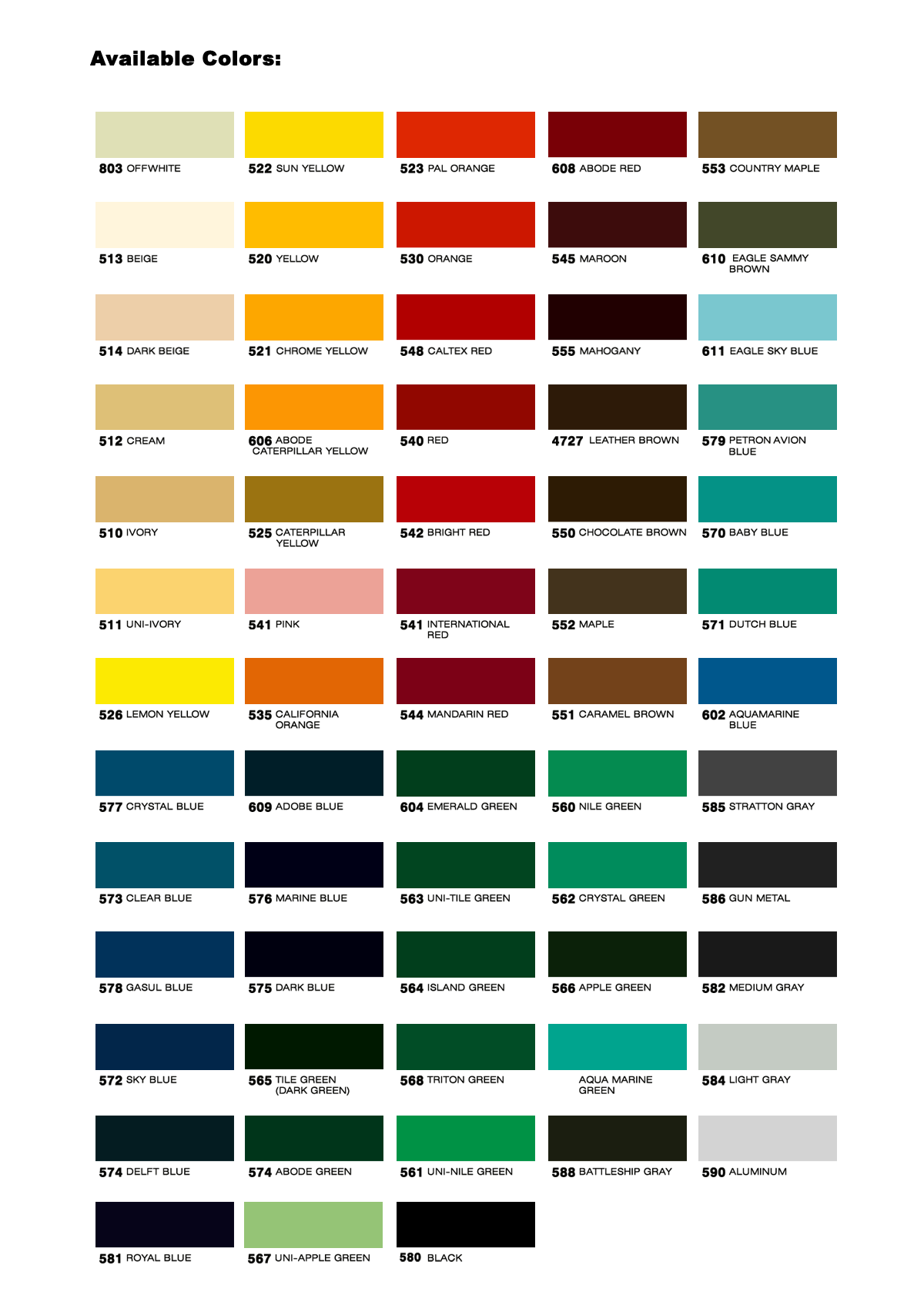 *Disclaimer: The colors displayed in this section may not precisely reflect paint colors because of technical limitations. Please send us an inquiry on our Contact us page for assistance.*